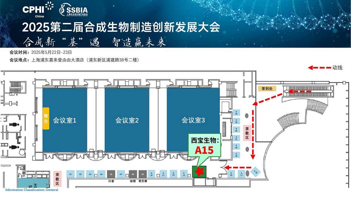 西寶生物作為上海市合成生物產(chǎn)業(yè)協(xié)會(huì)會(huì)員單位,也十分榮幸參與到此次會(huì)議中,我們的展位號(hào)是A15,靜候八方來客,與我們共同攜手探索生物制造領(lǐng)域的更多可能,共拓創(chuàng)新篇章。
