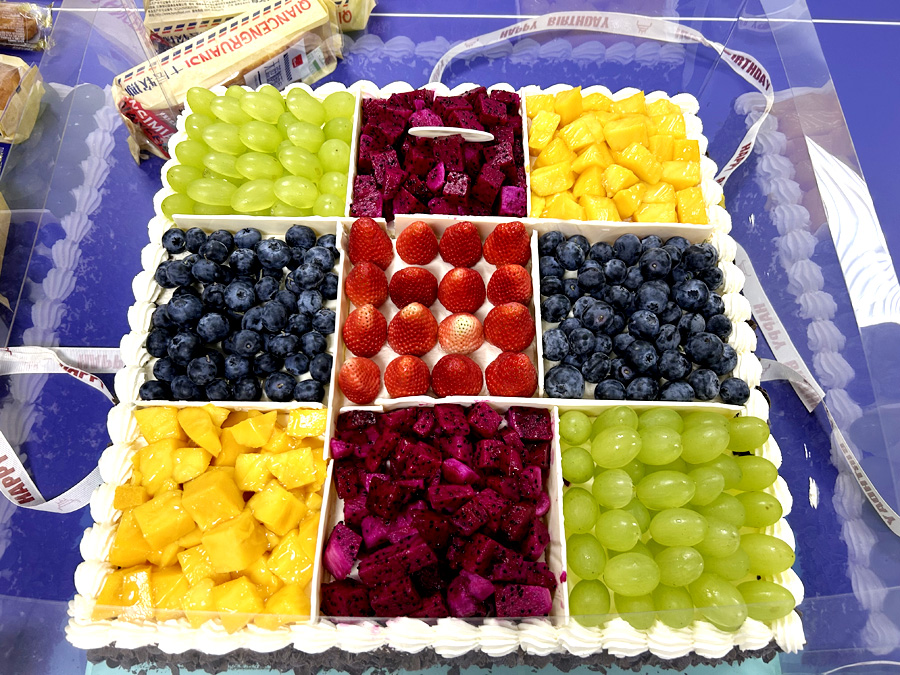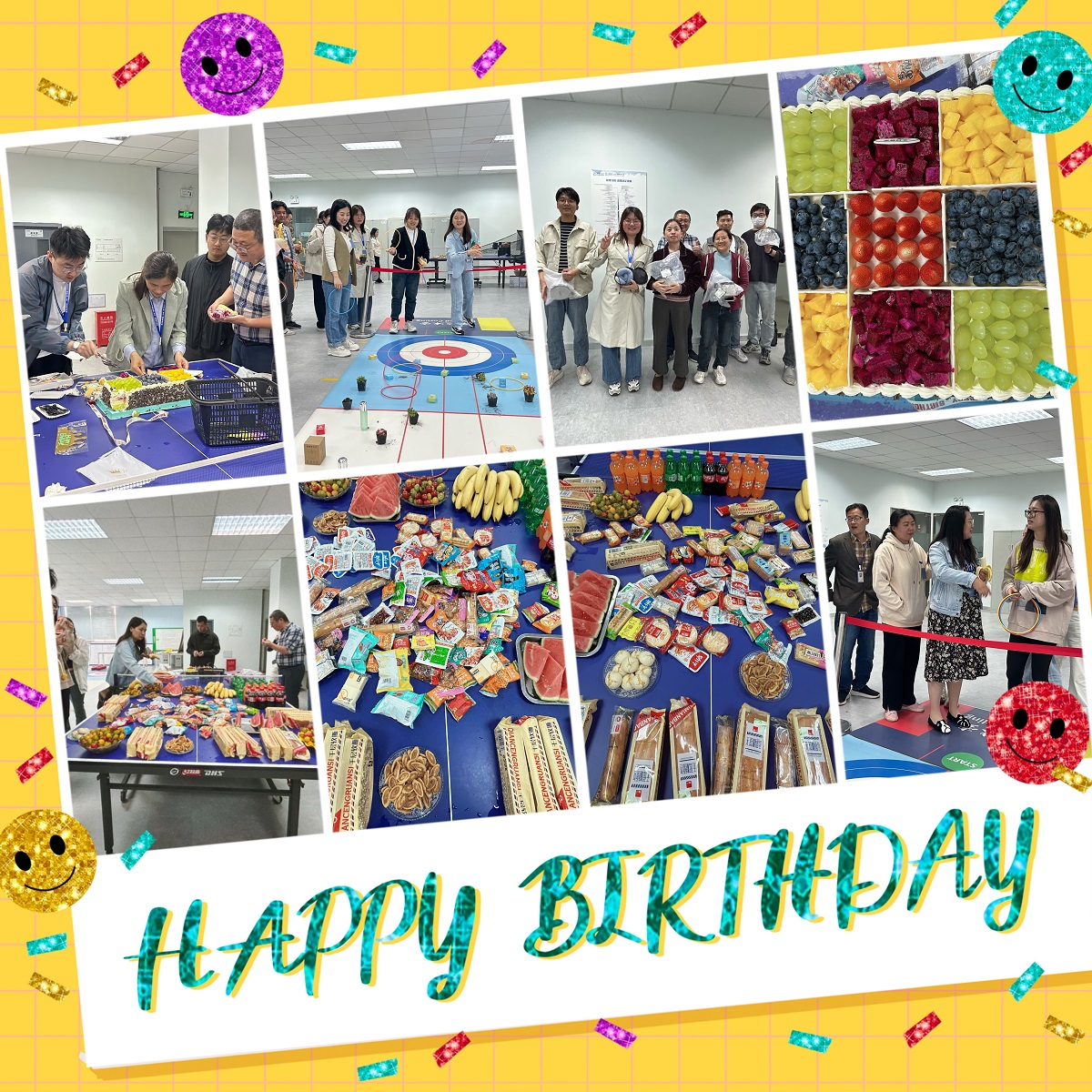 活動(dòng)現(xiàn)場(chǎng)搖身一變,成了承載歡笑與溫情的交流空間。琳瑯滿(mǎn)目的零食、沁爽的飲料、新鮮可口的水果整齊陳列于長(zhǎng)桌,象征美好祝愿的生日蛋糕占據(jù)視覺(jué)中心,儀式感拉滿(mǎn)。伴隨著溫馨的生日歌旋律,壽星們齊聚蛋糕前,雙手合十許下心愿。當(dāng)蠟燭熄滅的瞬間,熱烈的歡呼聲與掌聲交織,甜蜜的蛋糕傳遞間,“家文化”的溫暖在每一位員工心中流淌。