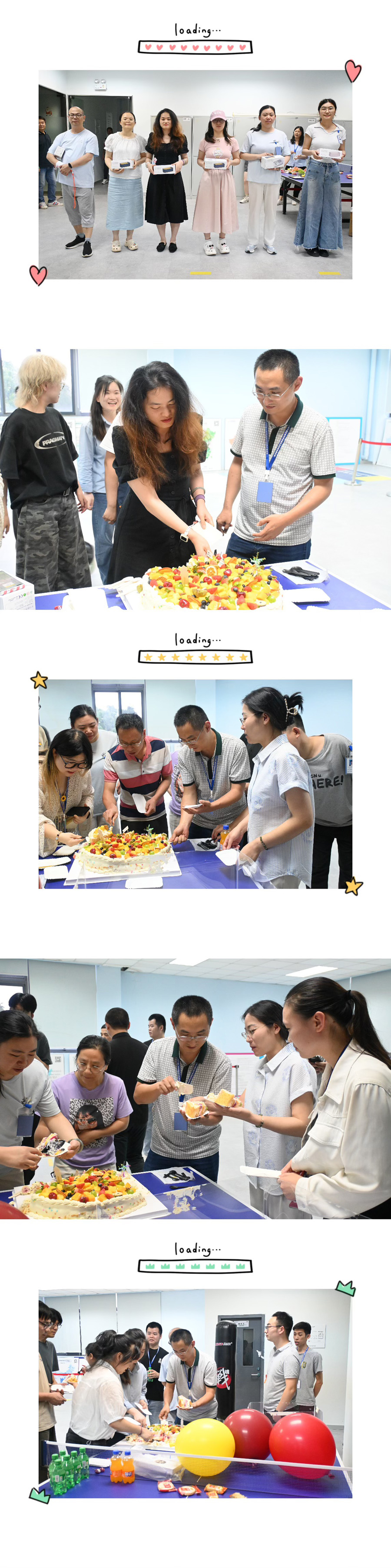 踏入活動(dòng)現(xiàn)場,精心布置的空間瞬間讓人感受到濃郁的溫馨氛圍。長桌變身「快樂補(bǔ)給站」,琳瑯滿目的美食、沁爽的飲品與新鮮的水果有序擺放,宛如一幅誘人的生活畫卷;中心位置,承載著美好祝愿的生日蛋糕熠熠生輝,儀式感撲面而來。不僅滿足了員工的味蕾,更傳遞出企業(yè)對(duì)員工細(xì)致入微的關(guān)懷。