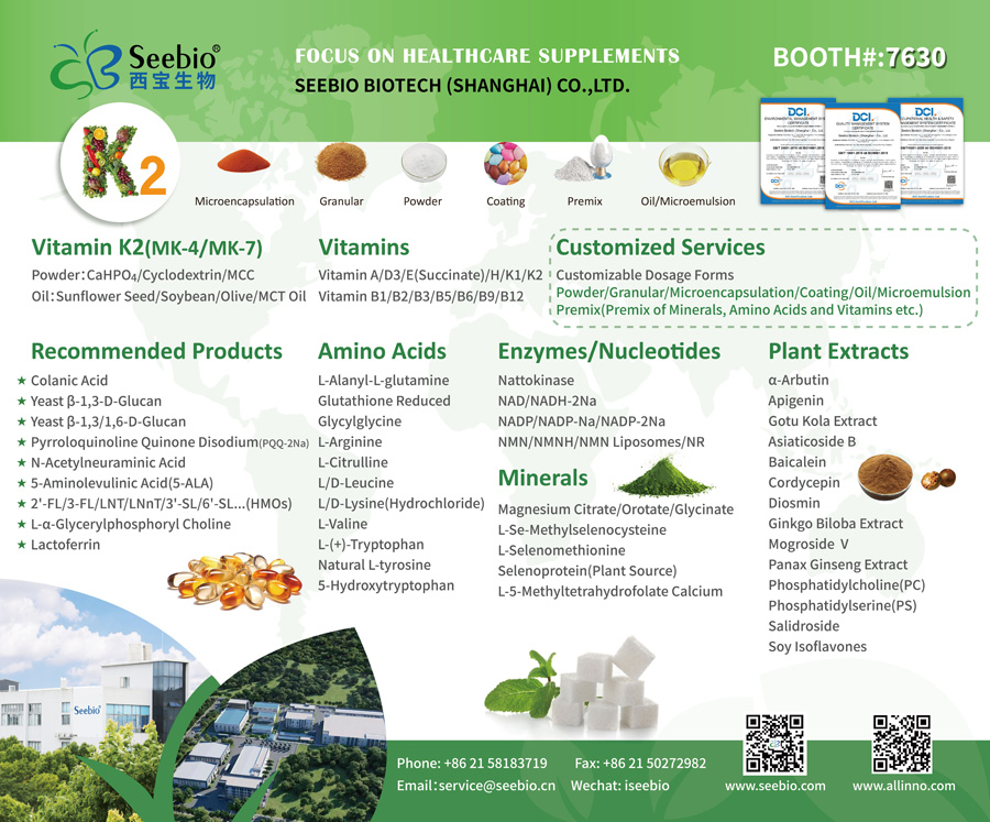 這不僅是新品的璀璨舞臺(tái),更是全球產(chǎn)業(yè)鏈精英對(duì)話的思想場(chǎng)域。西寶生物深耕原料創(chuàng)新二十余載,此次攜產(chǎn)品服務(wù)與前瞻布局亮相,期待在展位7630與您相遇。以創(chuàng)新原料為橋,讓合作的星火燎原,攜手叩開(kāi)全球市場(chǎng)新大門,共譜行業(yè)發(fā)展的恢弘篇章。