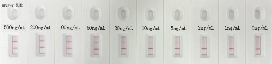 圖3 膠體金層析平臺(tái)測(cè)試HPIV-2抗原梯度示意圖