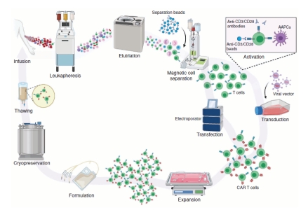 兩種針對(duì)T細(xì)胞開(kāi)展工程改造,提升其特異性殺傷腫瘤細(xì)胞效果的治療技術(shù)?;贖IV-1的慢病毒載體因其感染T細(xì)胞的能力,成為了改造T細(xì)胞的有效載體。在多年工藝探索后,慢病毒穩(wěn)轉(zhuǎn)體系目前是T細(xì)胞改造的主流方法,T細(xì)胞改造質(zhì)量可靠且穩(wěn)定,形成了相對(duì)可控的工藝體系。工藝所涉原料詳見(jiàn)文末原料列表。
