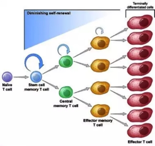 依靠IL-2的傳統(tǒng)培養(yǎng)中,激活擴(kuò)增得到的T細(xì)胞中,完全分化的效應(yīng)T細(xì)胞(TEF)占比更多。在使用IL-15部分替代IL-2的培養(yǎng)中,未完全分化的記憶T細(xì)胞(Tscm)的占比較僅以IL-2的顯著的多,研究表明,T細(xì)胞亞群的選擇是CAR-T細(xì)胞治療效果的基礎(chǔ)。在這方面,中央記憶T細(xì)胞(TCM)的CAR轉(zhuǎn)導(dǎo)似乎對(duì)體內(nèi)有效的細(xì)胞擴(kuò)張、存活和持久性至關(guān)重要,同樣數(shù)量細(xì)胞移植,移植Tscm的子代細(xì)胞數(shù)量較Tcm高10~100倍(Gattinoni L, Nat. Med.,2011)。此外,選擇幼稚或分化程度較低的CD8+T細(xì)胞進(jìn)行轉(zhuǎn)導(dǎo)可以使輸注后T細(xì)胞增殖和體內(nèi)持久性增加。