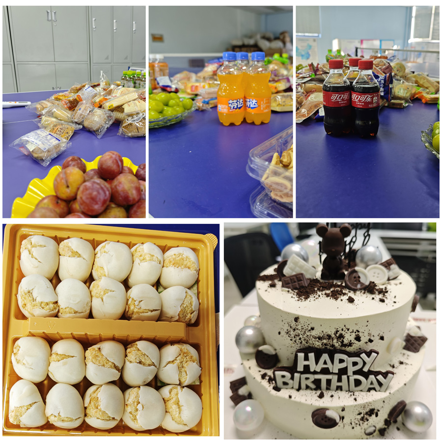 西寶人事行政部同事精心為大家布置的美食空間瞬間讓人感受到撲面而來的溫馨與驚喜。長桌化身「快樂補給站」,各類美食、水果、飲料鋪滿桌面,讓大家的視覺與味覺得到雙重享受,忙碌了一天的疲憊被美食瞬時消滅了。