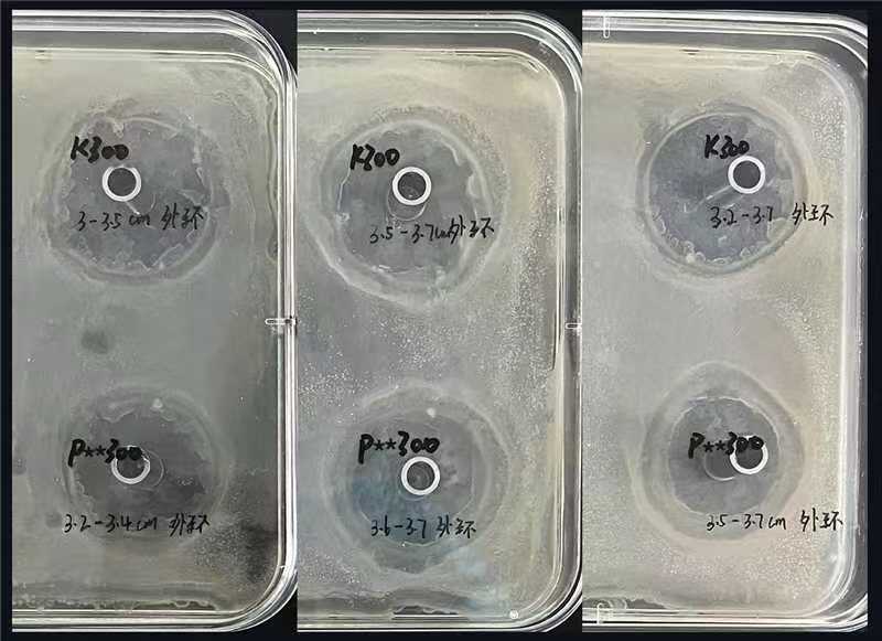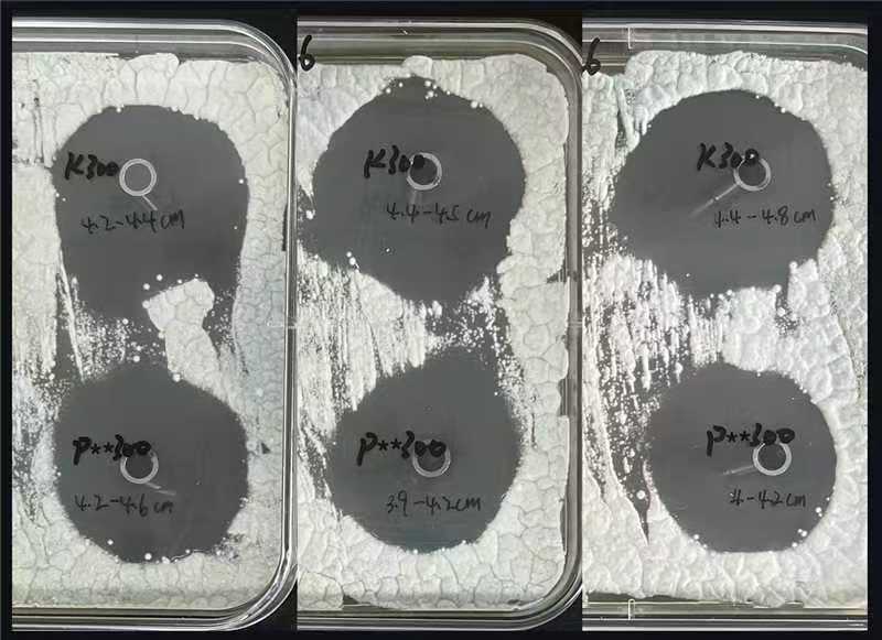 KroVin300和 P**300兩種防腐劑在在當(dāng)前測(cè)試條件下,對(duì)所選的測(cè)試菌種表現(xiàn)出可比的整體抗菌活性。抑菌圈基本相同說(shuō)明這兩種防腐劑性能相近,具有相似的廣譜抗菌活性,它們很可能擁有相同或非常相似的抗菌機(jī)制。實(shí)驗(yàn)顯示西寶KroVin300在細(xì)菌、霉菌、酵母菌的殺菌抑菌效果上與P**300近似甚至更佳。