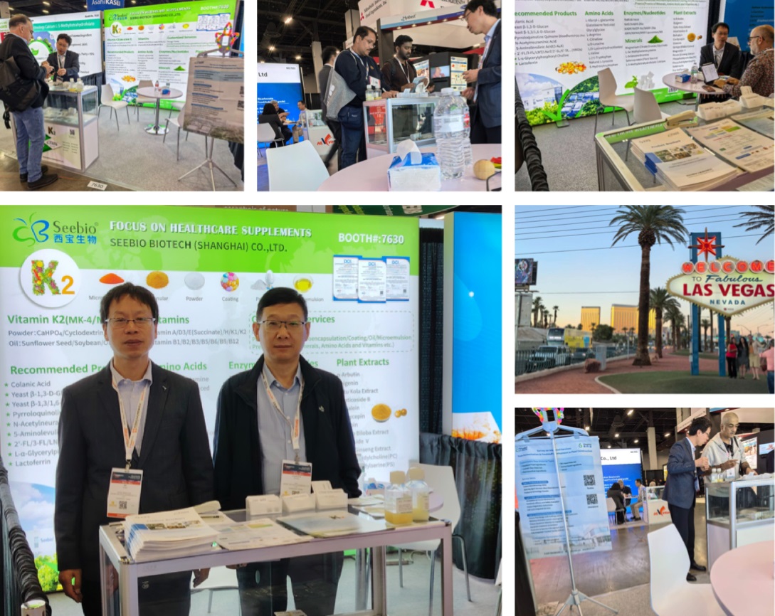 此外,西寶生物在展會(huì)上集中展示的多元明星產(chǎn)品矩陣,進(jìn)一步凸顯了我們“全品類覆蓋”優(yōu)勢(shì):維生素系列涵蓋維生素K2(MK4、MK7)、維生素 E(succinate)/K1、維生素 B12等;功能性成分包含花生四烯酸、膠原蛋白 (Ⅰ 型至 Ⅳ 型)、乳鐵蛋白、甘油糖苷等;天然提取物涉及甜菊糖苷、羅漢果苷、紅景天苷、牛至提取物、白柳樹(shù)皮提取物等;還包括硫酸葡聚糖(DSS)、人乳寡糖(HMOs)、尿石素 A/B、有機(jī)硒(L-硒-甲基硒代半胱氨酸等)、角鯊烯/角鯊?fù)榈燃?xì)分領(lǐng)域核心原料。豐富的產(chǎn)品品類與過(guò)硬的技術(shù)品質(zhì),吸引了眾多國(guó)際采購(gòu)商、研發(fā)機(jī)構(gòu)駐足交流,現(xiàn)場(chǎng)達(dá)成多項(xiàng)合作意向。
