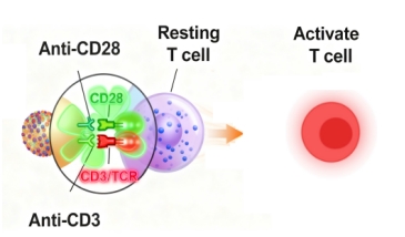 磁珠結(jié)合 | 磁珠與T細胞表面的CD3、CD28分子結(jié)合后,形成“免疫突觸”樣結(jié)構(gòu),通過多價交聯(lián)誘導TCR簇集,模擬天然抗原呈遞細胞(APC)與T細胞的相互作用。 |
