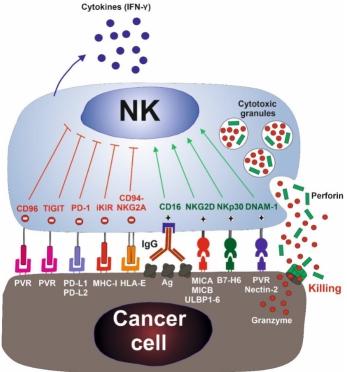 NKG2D | 激活型受體 | 識別在應(yīng)激或腫瘤細胞表面表達的分子(如 MICA, MICB)。 |