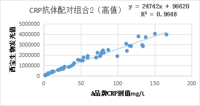 與A品牌CRP試劑臨床相關(guān)性R2>0.95;