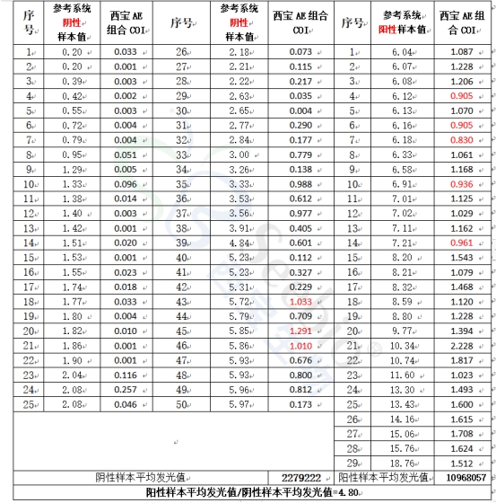 表2 西寶生物AP組合測(cè)試結(jié)果